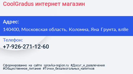 CoolGradus, интернет-магазин по адресу 140400, Московская область, Коломна, Яна Грунта, вл8е в дальнейшем Организация, размещена в следующих категориях: