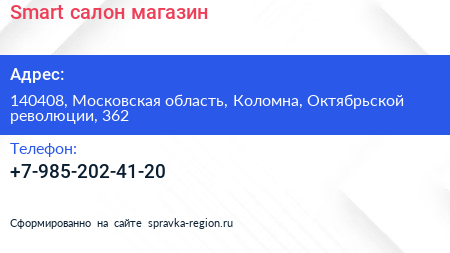 Smart, салон-магазин по адресу 140408, Московская область, Коломна, Октябрьской революции, 362 в дальнейшем Организация, размещена в следующих категориях: