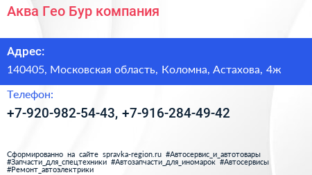 Аква-Гео-Бур, компания по адресу 140405, Московская область, Коломна, Астахова, 4ж в дальнейшем Организация, размещена в следующих категориях: