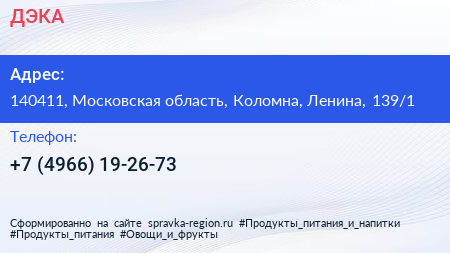 ДЭКА по адресу 140411, Московская область, Коломна, Ленина, 139/1 в дальнейшем Организация, размещена в следующих категориях: