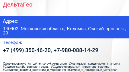ДельтаГео по адресу 140402, Московская область, Коломна, Окский проспект, 23 в дальнейшем Организация, размещена в следующих категориях: