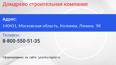 Домдрево, строительная компания по адресу 140411, Московская область, Коломна, Ленина, 98 в дальнейшем Организация, размещена в следующих категориях: