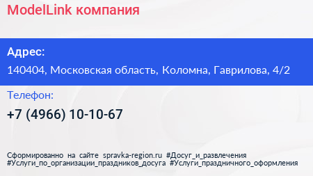 ModelLink, компания по адресу 140404, Московская область, Коломна, Гаврилова, 4/2 в дальнейшем Организация, размещена в следующих категориях: