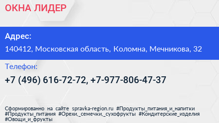 ОКНА ЛИДЕР по адресу 140412, Московская область, Коломна, Мечникова, 32 в дальнейшем Организация, размещена в следующих категориях: