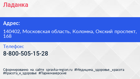 Ладанка по адресу 140402, Московская область, Коломна, Окский проспект, 168 в дальнейшем Организация, размещена в следующих категориях: