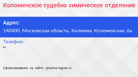 Коломенское судебно-химическое отделение по адресу 140400, Московская область, Коломна, Коломенская, 6а в дальнейшем Организация, размещена в следующих категориях: