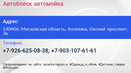 Автоблеск, автомойка по адресу 140406, Московская область, Коломна, Окский проспект, 3в в дальнейшем Организация, размещена в следующих категориях: