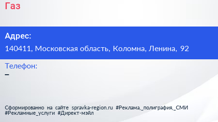 Газ по адресу 140411, Московская область, Коломна, Ленина, 92 в дальнейшем Организация, размещена в следующих категориях: