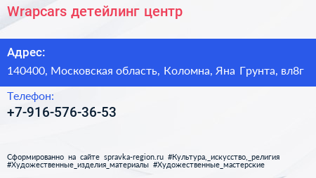 Wrapcars, детейлинг-центр по адресу 140400, Московская область, Коломна, Яна Грунта, вл8г в дальнейшем Организация, размещена в следующих категориях: