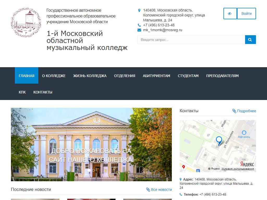 Московский областной музыкальный колледж по адресу 140408, Московская область, Коломна, Малышева, 24 в дальнейшем Организация, размещена в следующих категориях: