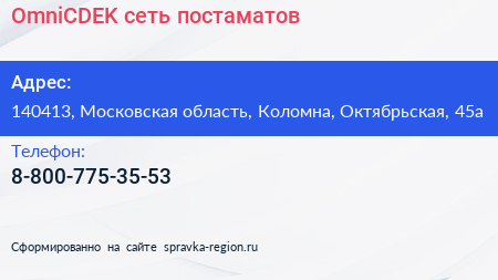 OmniCDEK, сеть постаматов по адресу 140413, Московская область, Коломна, Октябрьская, 45а в дальнейшем Организация, размещена в следующих категориях: