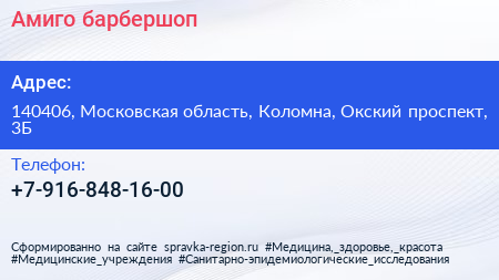 Амиго, барбершоп по адресу 140406, Московская область, Коломна, Окский проспект, 3Б в дальнейшем Организация, размещена в следующих категориях: