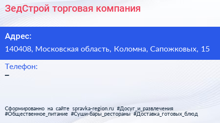 ЗедСтрой, торговая компания по адресу 140408, Московская область, Коломна, Сапожковых, 15 в дальнейшем Организация, размещена в следующих категориях: