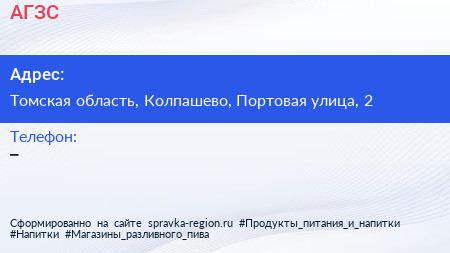 АГЗС по адресу Томская область, Колпашево, Портовая улица, 2 в дальнейшем Организация, размещена в следующих категориях: