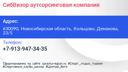 СибВизор, аутсорсинговая компания по адресу 630090, Новосибирская область, Кольцово, Демакова, 23/5 в дальнейшем Организация, размещена в следующих категориях: