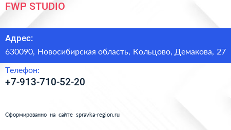 FWP STUDIO по адресу 630090, Новосибирская область, Кольцово, Демакова, 27 в дальнейшем Организация, размещена в следующих категориях: