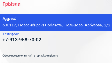 ГрЫзли по адресу 630117, Новосибирская область, Кольцово, Арбузова, 2/2 в дальнейшем Организация, размещена в следующих категориях: