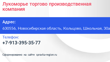 Лукоморье, торгово-производственная компания по адресу 630556, Новосибирская область, Кольцово, Школьная, 30а в дальнейшем Организация, размещена в следующих категориях:
