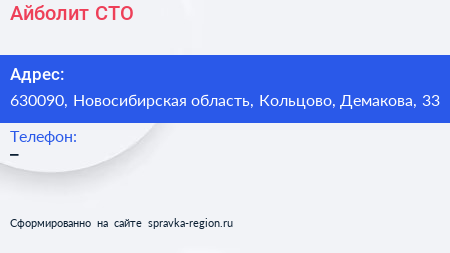 Айболит, СТО по адресу 630090, Новосибирская область, Кольцово, Демакова, 33 в дальнейшем Организация, размещена в следующих категориях: