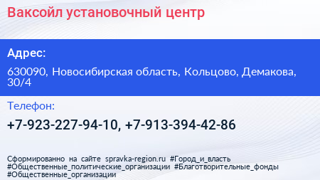 Ваксойл, установочный центр по адресу 630090, Новосибирская область, Кольцово, Демакова, 30/4 в дальнейшем Организация, размещена в следующих категориях:
