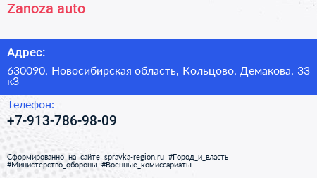 Zanoza auto по адресу 630090, Новосибирская область, Кольцово, Демакова, 33 к3 в дальнейшем Организация, размещена в следующих категориях: