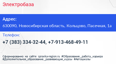 Электробаза по адресу 630090, Новосибирская область, Кольцово, Пасечная, 1а в дальнейшем Организация, размещена в следующих категориях: