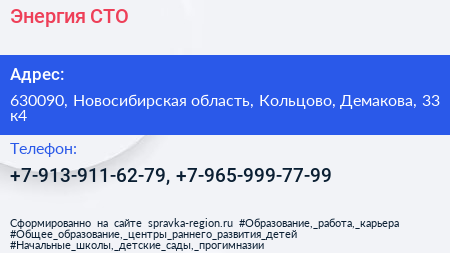 Энергия, СТО по адресу 630090, Новосибирская область, Кольцово, Демакова, 33 к4 в дальнейшем Организация, размещена в следующих категориях: