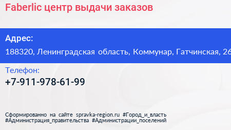 Faberlic, центр выдачи заказов по адресу 188320, Ленинградская область, Коммунар, Гатчинская, 26 в дальнейшем Организация, размещена в следующих категориях: