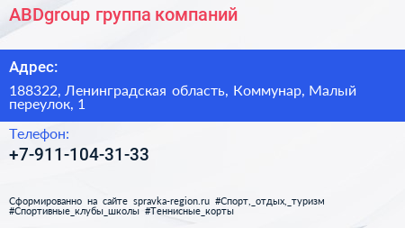ABDgroup, группа компаний по адресу 188322, Ленинградская область, Коммунар, Малый переулок, 1 в дальнейшем Организация, размещена в следующих категориях: