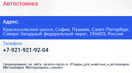 Автостоянка по адресу Красносельское шоссе, София, Пушкин, Санкт-Петербург, Северо-Западный федеральный округ, 196603, Россия в дальнейшем Организация, размещена в следующих категориях: