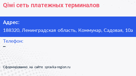 Qiwi, сеть платежных терминалов по адресу 188320, Ленинградская область, Коммунар, Садовая, 10а в дальнейшем Организация, размещена в следующих категориях:
