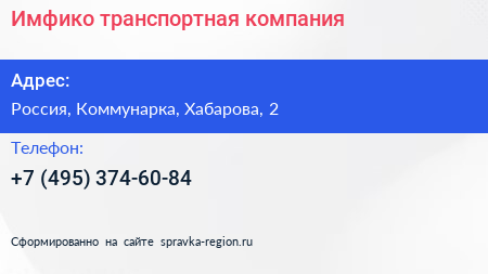 Имфико, транспортная компания по адресу Торгово-развлекательный комплекс "Новомосковский", 2, улица Хабарова, Филимонковский район, Московский, Москва, Центральный федеральный округ, 142784, Россия в дальнейшем Организация, размещена в следующих категориях: