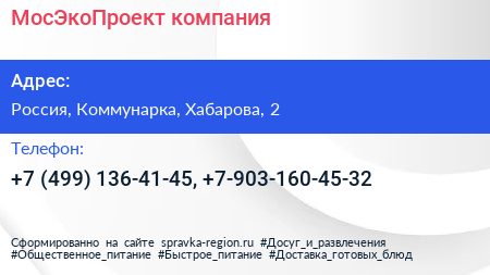 МосЭкоПроект, компания по адресу Торгово-развлекательный комплекс "Новомосковский", 2, улица Хабарова, Филимонковский район, Московский, Москва, Центральный федеральный округ, 142784, Россия в дальнейшем Организация, размещена в следующих категориях: