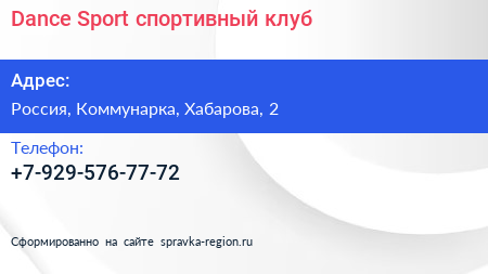Dance & Sport, спортивный клуб по адресу Торгово-развлекательный комплекс "Новомосковский", 2, улица Хабарова, Филимонковский район, Московский, Москва, Центральный федеральный округ, 142784, Россия в дальнейшем Организация, размещена в следующих категориях: