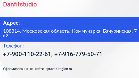 Danfitstudio по адресу 108814, Московская область, Коммунарка, Бачуринская, 7 к2 в дальнейшем Организация, размещена в следующих категориях: