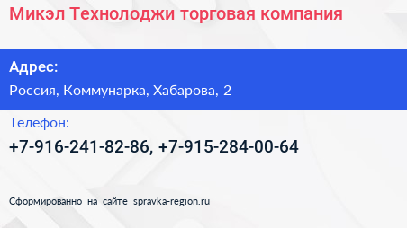 Микэл Технолоджи, торговая компания по адресу Торгово-развлекательный комплекс "Новомосковский", 2, улица Хабарова, Филимонковский район, Московский, Москва, Центральный федеральный округ, 142784, Россия в дальнейшем Организация, размещена в следующих категориях: