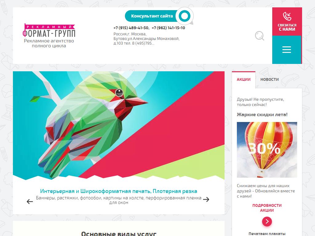 РЕКЛАМНЫЙ ФОРМАТ-ГРУПП, рекламно-производственная компания по адресу 108801, Московская область, Коммунарка, улица Александры Монаховой, 103 в дальнейшем Организация, размещена в следующих категориях: