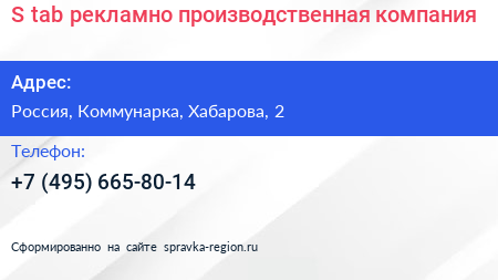 S-tab, рекламно-производственная компания по адресу Торгово-развлекательный комплекс "Новомосковский", 2, улица Хабарова, Филимонковский район, Московский, Москва, Центральный федеральный округ, 142784, Россия в дальнейшем Организация, размещена в следующих категориях: