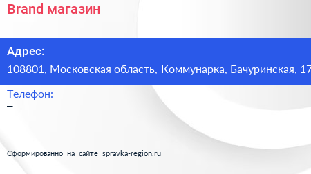 Brand, магазин по адресу 108801, Московская область, Коммунарка, Бачуринская, 17 в дальнейшем Организация, размещена в следующих категориях: