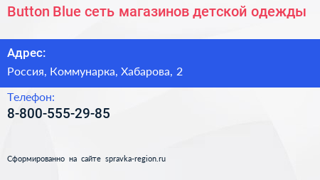 Button Blue, сеть магазинов детской одежды по адресу Торгово-развлекательный комплекс "Новомосковский", 2, улица Хабарова, Филимонковский район, Московский, Москва, Центральный федеральный округ, 142784, Россия в дальнейшем Организация, размещена в следующих категориях: