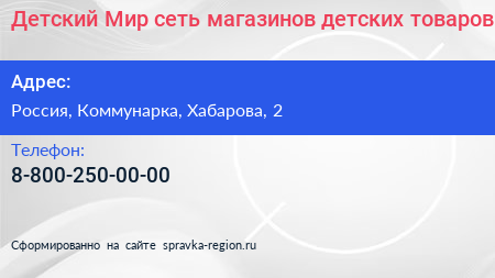 Детский Мир, сеть магазинов детских товаров по адресу Торгово-развлекательный комплекс "Новомосковский", 2, улица Хабарова, Филимонковский район, Московский, Москва, Центральный федеральный округ, 142784, Россия в дальнейшем Организация, размещена в следующих категориях: