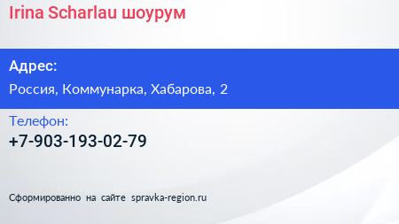 Irina Scharlau, шоурум по адресу Торгово-развлекательный комплекс "Новомосковский", 2, улица Хабарова, Филимонковский район, Московский, Москва, Центральный федеральный округ, 142784, Россия в дальнейшем Организация, размещена в следующих категориях: