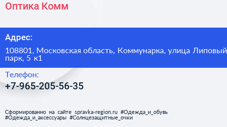 Оптика.Комм по адресу 108801, Московская область, Коммунарка, улица Липовый парк, 5 к1 в дальнейшем Организация, размещена в следующих категориях: