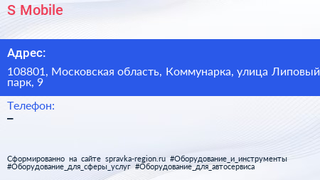 S. Mobile по адресу 108801, Московская область, Коммунарка, улица Липовый парк, 9 в дальнейшем Организация, размещена в следующих категориях: