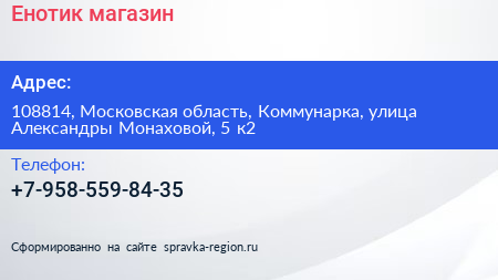 Енотик, магазин по адресу 108814, Московская область, Коммунарка, улица Александры Монаховой, 5 к2 в дальнейшем Организация, размещена в следующих категориях: