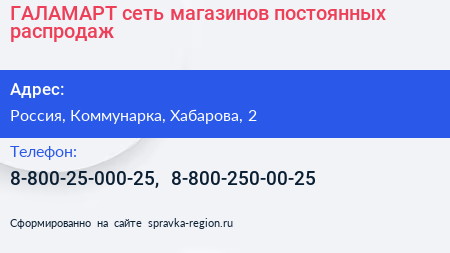 ГАЛАМАРТ, сеть магазинов постоянных распродаж по адресу Торгово-развлекательный комплекс "Новомосковский", 2, улица Хабарова, Филимонковский район, Московский, Москва, Центральный федеральный округ, 142784, Россия в дальнейшем Организация, размещена в следующих категориях: