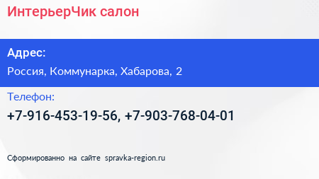ИнтерьерЧик, салон по адресу Торгово-развлекательный комплекс "Новомосковский", 2, улица Хабарова, Филимонковский район, Московский, Москва, Центральный федеральный округ, 142784, Россия в дальнейшем Организация, размещена в следующих категориях: