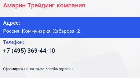 Амарин Трейдинг, компания по адресу Торгово-развлекательный комплекс "Новомосковский", 2, улица Хабарова, Филимонковский район, Московский, Москва, Центральный федеральный округ, 142784, Россия в дальнейшем Организация, размещена в следующих категориях: