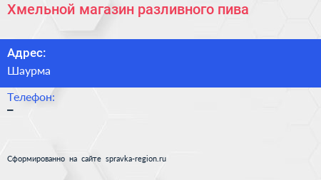 Хмельной, магазин разливного пива по адресу Шаурма в дальнейшем Организация, размещена в следующих категориях:
