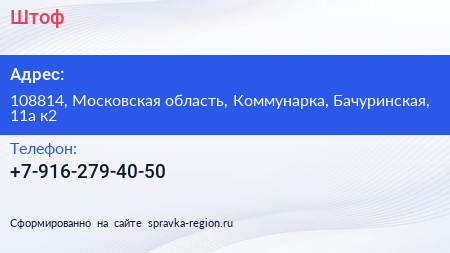 Штоф по адресу 108814, Московская область, Коммунарка, Бачуринская, 11а к2 в дальнейшем Организация, размещена в следующих категориях: